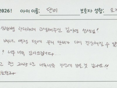 1년간 심장병 관리하며 고생해주신 김아영 선생님!진심과 배려, 애정..