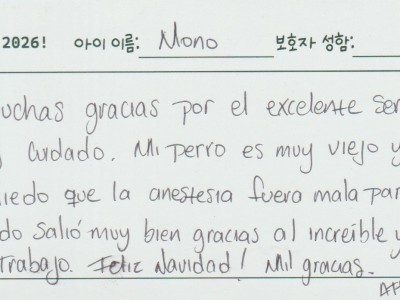 경기동물의료원 덕분에 울 콩이 건강 잘 지켜갑니다. 감사해요.