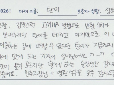 1년간 심장병 관리하며 고생해주신 김아영 선생님!진심과 배려, 애정..